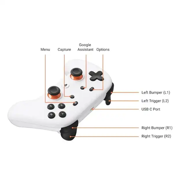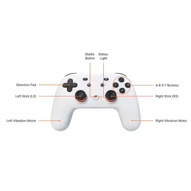دسته بازی Google Stadia با طراحی ارگونومیک، دکمههای نرم، استیکهای دقیق، موتورهای لرزاننده داخلی، جک ۳.۵ میلیمتری هدفون، میکروفون داخلی، دکمه Google Assistant و پورت USB-C عرضه میشود. این کنترلر برای موبایل و کامپیوتر مناسب است. دستهای که ما ارائه میدهیم قبلاً آپدیت شده و بلوتوث آن فعال است، بنابراین به راحتی میتوان به صورت بیسیم از آن استفاده کرد. در صورتی که بلوتوث فعال نباشد تنها امکان استفاده با کابل وجود دارد. همچنین توجه داشته باشید که شاید در آینده امکان فعالسازی رسمی بلوتوث برای دستههای دیگر وجود نداشته باشد.