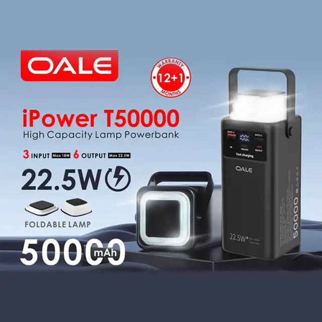 پاوربانک چراغدار Oale مدل T50000 ظرفیت ۵۰۰۰۰ میلیآمپر